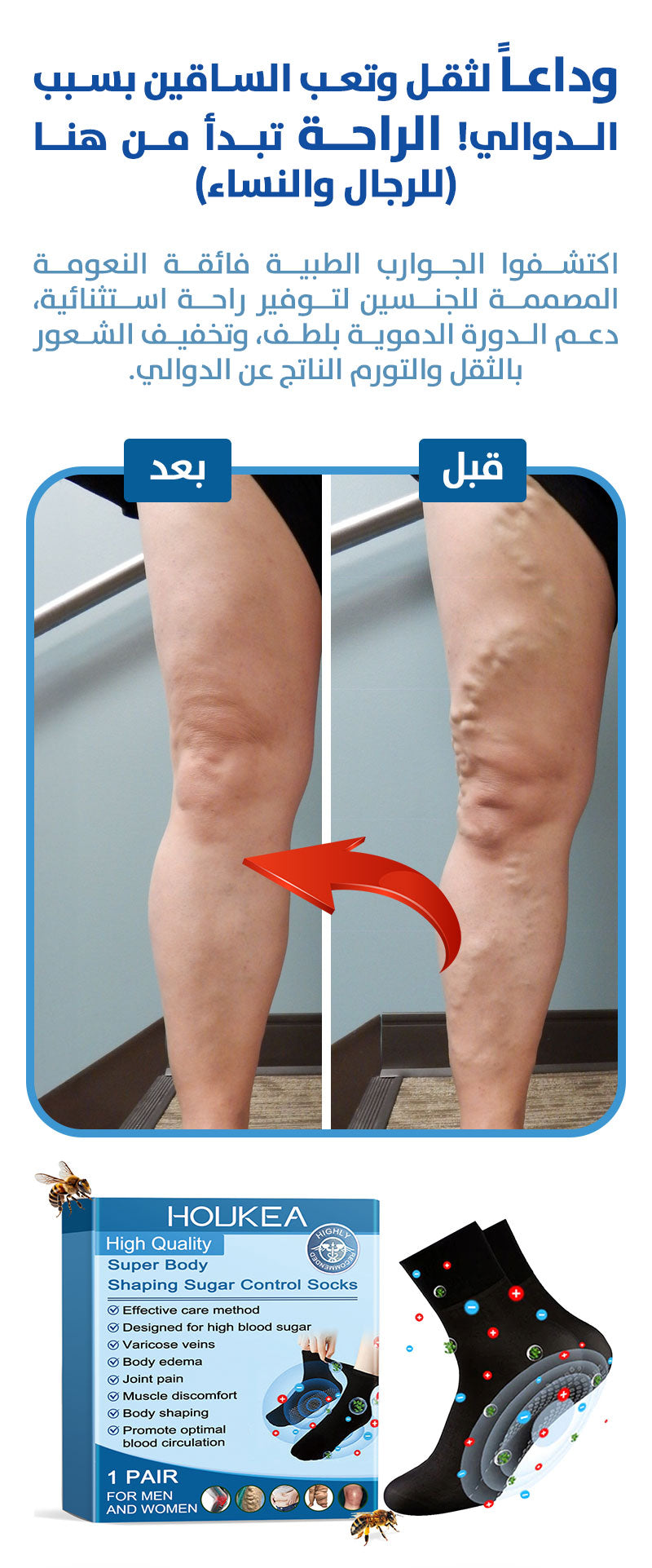 🔥 وداعاً لثقل الساقين! ✅ جوارب الدوالي غير الضاغطة للراحة الفورية